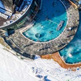Al final del día, ve a los baños termales para disfrutar de un merecido descanso. Nada en las piscinas cubiertas y al aire libre, diviértete en los toboganes acuáticos y los jacuzzis, y relájate en un tranquilo entorno de montaña.