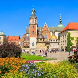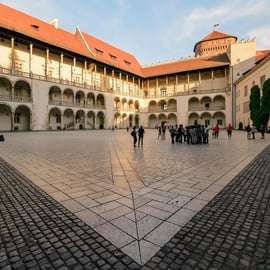 Reúnete con tu guía y dirígete al Castillo de Wawel, símbolo del Estado polaco y de siglos de monarquía, que ha sido residencia de reyes desde el siglo XI. Este majestuoso castillo, encaramado en lo alto de la colina de Wawel, ofrece una visión del pasado regio del país.