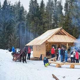 Ve la pista de saltos de esquí utilizada para la competición Grant Prix Ski Jump. Disfruta de un inolvidable paseo en trineo en medio de las espectaculares vistas de las montañas cubiertas de nieve y disfruta de un festín junto al fuego en medio del extenso paisaje. Esta parte del viaje dura entre 2 y 3 horas.