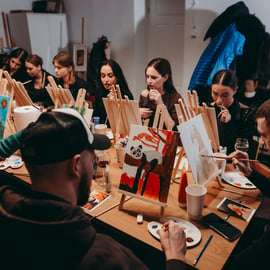 Impara semplici tecniche di pittura, gioca con colori e trame e crea la tua opera d'arte da portare a casa come ricordo unico di Cracovia. L'atmosfera è divertente, amichevole e artistica, perfetta per coppie, amici, studenti Erasmus o viaggiatori solitari in cerca di qualcosa di nuovo e memorabile.
