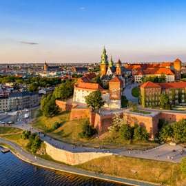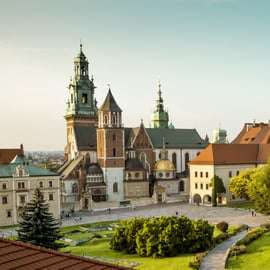 Scopri l'affascinante storia di questo magnifico castello. Divertiti ad esplorare uno degli edifici più iconici della Polonia, arroccato in cima alla collina di Wawel vicino al fiume Vistola.