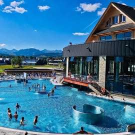 Prova il profondo relax dell'immersione nelle acque termali dei bagni Chochołowskie in questo tour da Cracovia. Goditi l'accesso a 20 piscine, idromassaggio, un fiume impetuoso e geyser d'acqua.