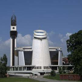 Em seguida, percorreremos uma pequena distância até o Santuário de São João Paulo II, dedicado à vida e ao legado do amado Papa. O santuário faz parte do "Have No Fear!" (Não tenha medo!) Center, que inclui uma igreja, um museu e várias exposições que detalham a vida, os ensinamentos e os momentos significativos do papado de João Paulo II. A arquitetura aqui combina modernidade com elementos tradicionais, criando um espaço que honra a memória do papa e inspira os visitantes a refletir sobre suas contribuições para a Igreja e o mundo.